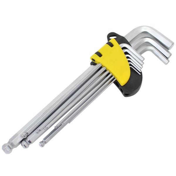 このロングタイプの六角レンチセットも必需品です。100均で売っているセットは応急的な整備なら使えないくも無いですが、ある程度力をかけたり、作業効率を考えると必須です。長い柄の部分の先端はボール型になっていて、あらゆる角度からでも六角ボルトが回せるようになっています。